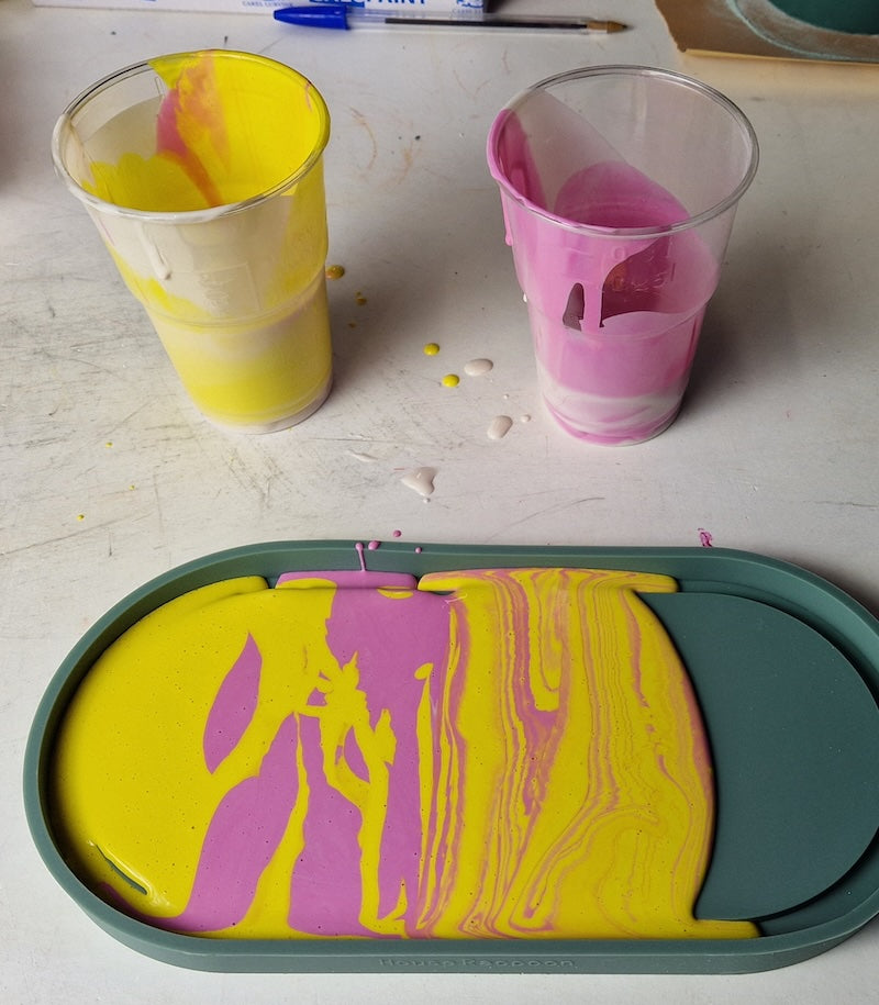 House Raccoon is de voorbije jaren uitgegroeid tot dé naam in kleurrijke Terrazzo-workshops. In een sessie van twee tot drie uur creëren deelnemers twee stijlvolle woonaccessoires in hun favoriete kleuren.