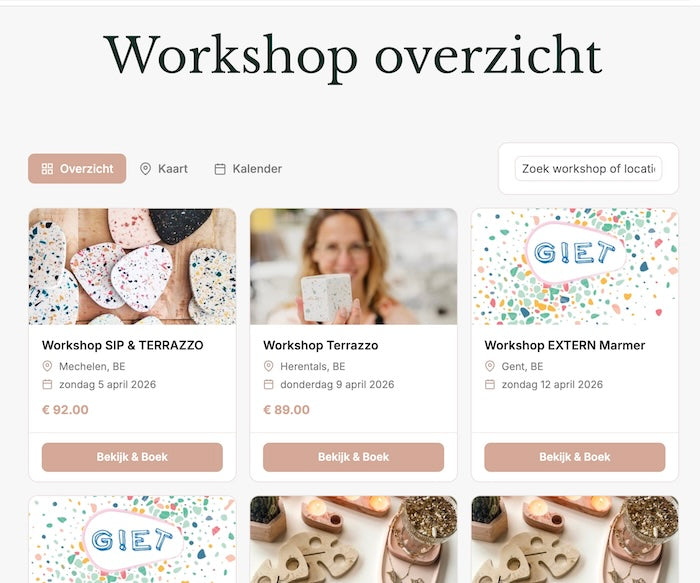 We zien ook andere aanbieders kleurrijke workshops organiseren, vaak ontstaan vanuit iemands eigen creatieve experimenten met pigmenten en vormen. Deze workshops vinden plaats op unieke locaties, van omgebouwde schuren in de tuin tot inspirerende (gehuurde)